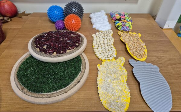 Po ścieżce sensorycznej nie trzeba chodzić – można ją również dotykać dłońmi, obserwować, wąchać, słuchać lub po prostu być obok. Jej „przemierzanie” to sprawa indywidualna – każdy uczestnik może odkrywać ją w swoim tempie i na swój własny sposób.